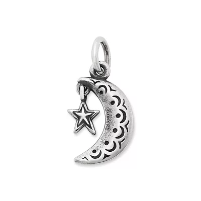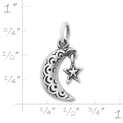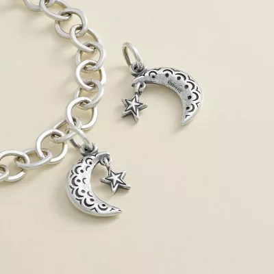 Delicately detailed on both sides, available in sterling silver or 14K gold, the Adorned Starry Night Charm features a crescent moon with a small, dangling star. It makes a sweet celestial statement on any bracelet, charm necklace or chain.