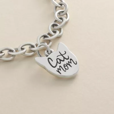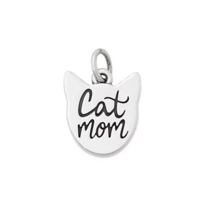 Capture the sweet cuddles and soothing purrs of your favorite furry friend. This sterling silver “Cat Mom” Charm captures a playful feline face and the back of the left ear features a small heart. The smooth space on the back is perfect for engraving your cat’s name, birthday or adoption day.