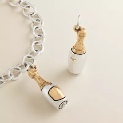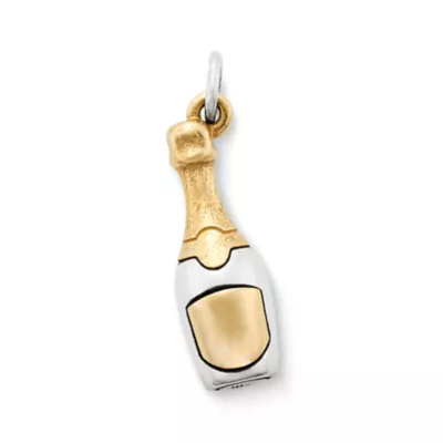 This design is retiring from our active line and once the remaining stock is sold, it will no longer be available. Cheers a special memory or toast those you love with this 14K gold and sterling silver champagne bottle. Originally released in 2008, this charm is crafted with a little blank label on the front, perfect for engraving personal initials.