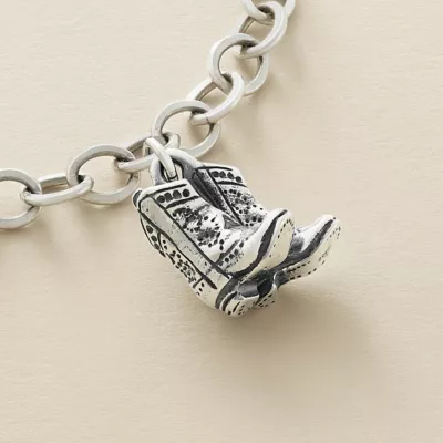Crafted to look weathered and worn, these little cowboy boots add Southwestern spirit to any charm bracelet or chain.