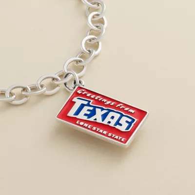 Inspired by vintage postcards from the ’40s and ’50s, this engravable sterling silver charm puts your love for the Lone Star State on full display. The front features a color scheme reminiscent of beautiful Hill Country sunsets, while the back includes nostalgic details like a heart for a stamp.