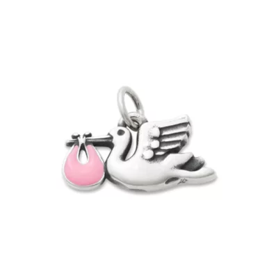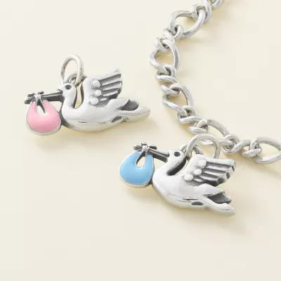 Celebrate the arrival of your bundle of joy with the Enamel Special Delivery Charm, in pink or blue enamel. A fun gender reveal gift for moms-to-be, grandmothers-to-be and big-sisters-to-be, this friendly, sterling silver stork wings along carrying a precious, hand-enameled swaddle in its beak. The back of this keepsake charm is engravable.