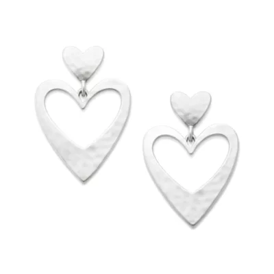 This design is retiring from our active line and once the remaining stock is sold, it will no longer be available. Express your love with earrings that shimmer and shine! These bold dangle earrings feature a hammered finish and two artful hearts.