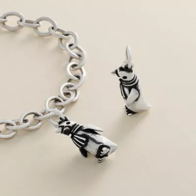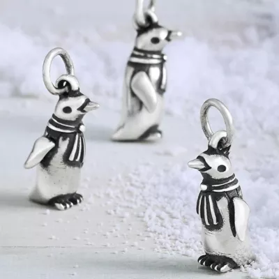 Sweetly detailed with wings that swing back and forth and wrapped up in a little scarf, this sterling silver penguin charm is ready to waddle in a winter wonderland.