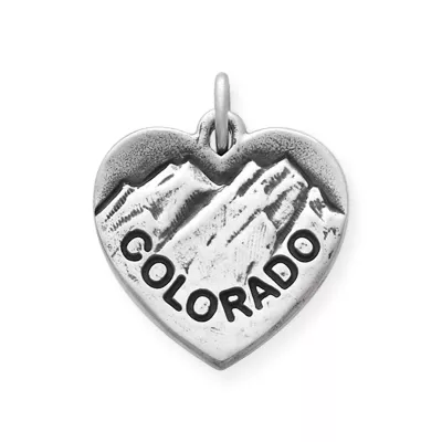 Express your love and pride for Colorado with a heart-shaped charm featuring the majestic Rocky Mountains.