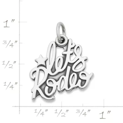 Dust off your boots and get ready to rodeo! Celebrate this western tradition with a sterling silver charm featuring “let’s rodeo” in cursive lettering, accented with a small star.