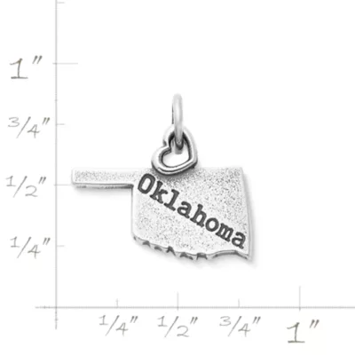 Express pride in your home state or remember a wonderful vacation with this Oklahoma charm. A flat surface on the back is perfect for engraving dates and other special memories. Topped with an open heart, this sterling style – which can be worn on a charm bracelet, charm necklace or chain – is a great way to capture the memories no matter where you wander.