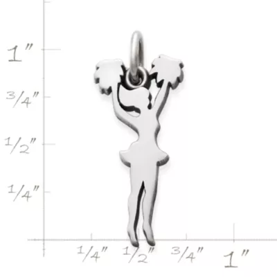 Team spirit, pride, and devotion form the core values stylishly portrayed in this sterling silver silhouette cheer charm.