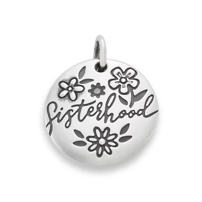 A wonderful gift for the sisters, friends and other women who surround and support you, this sterling silver charm features lots of space on the back to engrave a name, date or initials. Featuring floral accents, it pairs wonderfully with nature- or garden-themed designs.